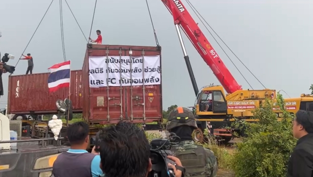 กัน จอมพลัง เปิดเผย หลังวางตู้คอนเทนเนอร์ทั้ง 5 ตู้เสร็จสิ้นว่า โดยนัดหมายประชาชนวันพรุ่งนี้ในเวลา 10:00 น. เพื่อแสดงออกเชิงสัญลักษณ์กับตู้คอนเทนเนอร์โดยตนเองจะนำป้ายไวนิวพร้อมปากกาเมจิกมาให้ประชาชนเขียนระบายความในใจที่มีต่อกัมพูชาส่วนอีกด้านของตู้คอนเทนเนอร์จะให้เขียนให้กำลังใจกับเจ้าหน้าที่ทหารและเจ้าหน้าที่ที่ปฏิบัติงาน