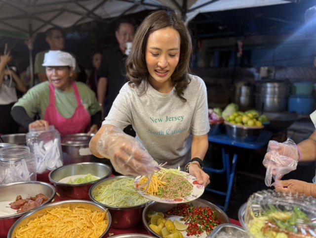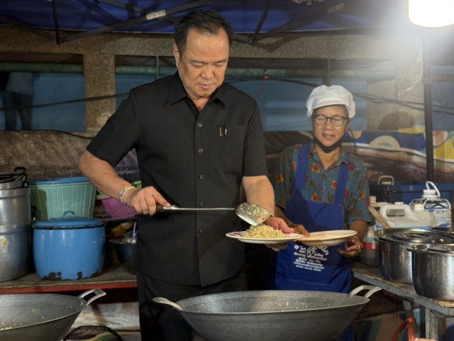 นายกรัฐมนตรี ยังได้โชว์สกิล ”เชฟหนู“ ผัดข้าวคลุกกะปิ ซึ่งเป็นเมนูจานทอง ที่ได้รับรางวัลชนะเลิศระดับประเทศของจังหวัดสิงห์บุรี โดยมี น.ส.ธนนนท์ นิรามิษ ภริยาคอยเป็นลูกมือในการจัดจาน และใส่เครื่องเคียง