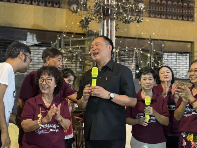 จากนั้น นายอนุทิน ได้ร่วมร้องเพลง กลับชมรมรักสุนทราภรณ์สิงห์บุรี ในเพลง “ทาสเทวี” พร้อมเต้นรำกับผู้สูงอายุ ก่อนที่จะขอร้องต่ออีกเพลง โดยนายกฯ ขอร้องเพลง “บ้านเกิดเมืองนอน” พร้อมระบุว่า “ขอร้องเพลงนี้ดังๆ ให้ไปถึงพี่น้องทหาร ตำรวจ และเจ้าหน้าที่ที่ปฏิบัติหน้าที่อยู่ชายแดน ไทย - กัมพูชา ซึ่งประชาชนร่วมร้องเพลง และเรียกเสียงตบมือ เพื่อปลุกความรักชาติ และสามัคคี
