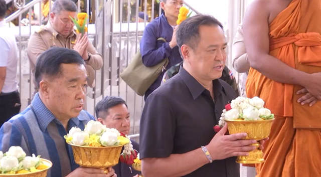 เมื่อถามต่อว่าได้ขอพรให้พรรคภูมิใจไทย ได้ สส. ทั้งจังหวัดหรือไม่ นายกรัฐมนตรี กล่าวว่า ไม่ได้ขอพรเรื่องการเมืองเลย