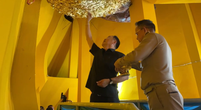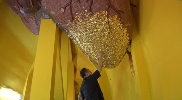จากนั้น ได้เข้าไปปิดทองหัวใจพระนอน เพื่อความเป็นสิริมงคลแก่ตนเองและคณะ โดยได้เปิดเผยว่า ตนเองได้อธิฐานขอพรให้ประเทศไทยมีชัยชนะ ต่อผู้ที่ไม่ประสงค์ดี โดยปราศจากเงื่อนไข ทั้งเรื่องสถานการณ์ที่เกิดขึ้นในขณะนี้ และทุกอย่าง ใครไม่หวังดีกับประเทศไทยต้องพินาศ