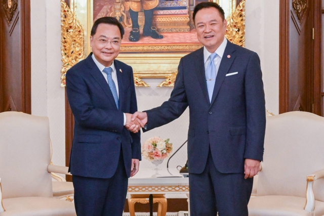 ด้านเอกอัครราชทูตจีนได้ฝากคำปรารถนาดีและคำอวยพรจากนายหลี่ เฉียง นายกรัฐมนตรีสาธารณรัฐประชาชนจีน ให้แก่นายกรัฐมนตรี และยินดีที่วันนี้ได้มีโอกาสเข้าพบอย่างเป็นทางการ ซึ่งทั้งสองประเทศต่างมีมิตรภาพอันแน่นแฟ้นที่สืบทอดมากว่าครึ่งศตวรรษ โดยต่างเคารพ สนับสนุน และร่วมมือกันอย่างเสมอภาค เป็นมิตรแท้ที่ประชาชนทั้งสองฝ่ายตระหนักดีว่า "ไทย-จีน ใช่อื่นไกล พี่น้องกัน" และจะยังคงสานต่อความสัมพันธ์ให้แน่นแฟ้นยิ่งขึ้นในอนาคต พร้อมชื่นชมการทำงานของนายกรัฐมนตรีที่มุ่งมั่นปฏิบัติภารกิจอย่างต่อเนื่อง ทั้งการประชุมคณะรัฐมนตรี การลงพื้นที่พบปะประชาชนทั่วประเทศ รวมทั้งการเยี่ยมพื้นที่ชายแดน เพื่อให้กำลังใจเจ้าหน้าที่ในการปฏิบัติหน้าที่