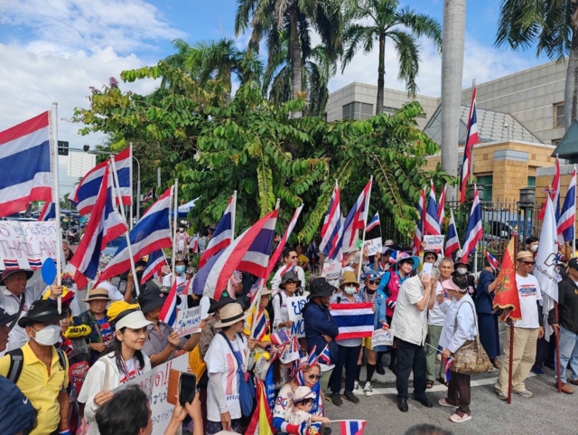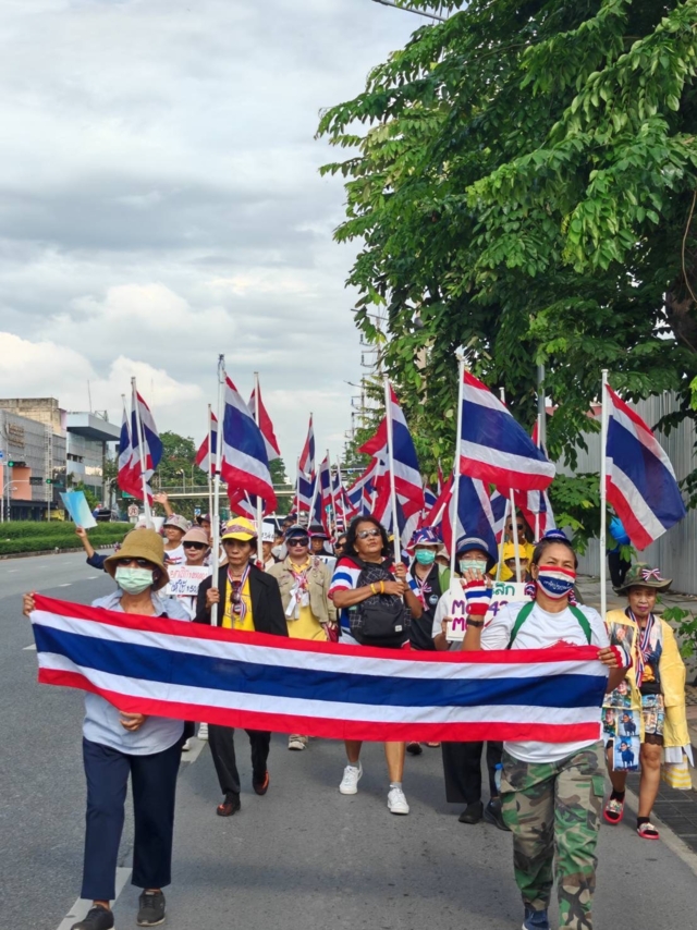 โดยมีการแสดงออกเชิงสัญลักษณ์ ทั้งการถือธงชาติไทย ถือป้ายข้อความแสดงจุดยืน เช่น "รวมพลังยกเลิก MOU 43 MOU44" "ยุติการเจรจา JBC" รวมทั้งมีแกนนำหมุนเวียนสับเปลี่ยนกันขึ้นไปกล่าวปราศรัยบนรถขยายเสียง ท่ามกลางการดูแลรักษาความปลอดภัยของเจ้าหน้าที่ตำรวจกองบัญชาการตำรวจนครบาล 7 จำนวนหนึ่งกองร้อย และเจ้าหน้าที่จาก กทม.