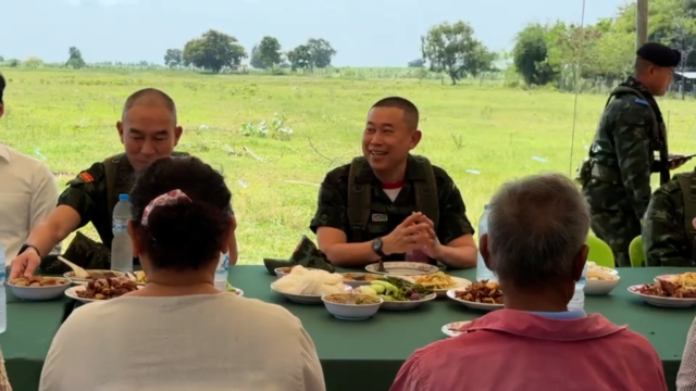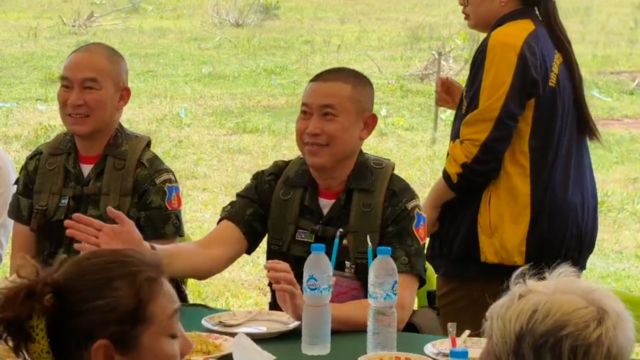 พล.ท.วรยส เหลืองสุวรรณ แม่ทัพภาคที่ 1 ได้มาร่วมโต๊ะอาหารกับชาวบ้าน หนองหญ้าแก้ว หลังจากเสร็จสิ้นภารกิจมอบคืนพื้นที่ทำกินให้กับชาวบ้าน