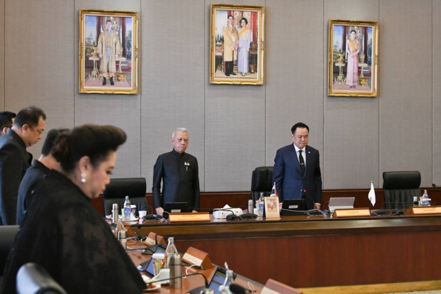 จากนั้น นายกรัฐมนตรี นำคณะรัฐมนตรี ยืนสงบนิ่งถวายความอาลัยแด่สมเด็จพระนางเจ้าสิริกิติ์ พระบรมราชินีนาถ พระบรมราชชนนีพันปีหลวง
