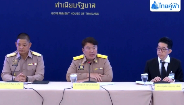นายสิริพงศ์ อังคสกุลเกียรติ โฆษกประจำสำนักนายกรัฐมนตรี พร้อมด้วย นายเบญจมินทร์ สุกาญจนัจที อธิบดีกรมสนธิสัญญาและกฎหมาย กระทรวงการต่างประเทศ, พล.ร.ต.สุรสันต์ คงสิริ โฆษกกระทรวงกลาโหม, พล.ต.วิทัย ลายถมยา โฆษกกองบัญชาการกองทัพไทย, พล.ต.วินธัย สุวารี โฆษกกองทัพบก, พล.ร.ต.ปารัช รัตนไชยพันธ์ โฆษกกองทัพเรือ, พล.อ.ท.จักรกฤษณ์ ธรรมวิชัย โฆษกกองทัพอากาศ และพล.ต.ต.ศิริวัฒน์ ดีพอ รองโฆษกสำนักงานตำรวจแห่งชาติ แถลงความคืบหน้าจากผลการหารือระหว่างนายกรัฐมนตรี และ นายกรัฐมนตรีกัมพูชา (Joint Declaration) และการประชุมที่เกี่ยวข้อง (JBC และ GBC) ณ ตึกสันติไมตรี (หลังใน) ทำเนียบรัฐบาล
