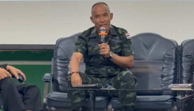 วันที่ 3 พ.ย. 68 ที่หอประชุมคณะวิทยาการจัดการ มหาวิทยาลัยราชภัฏสุรินทร์ พล.ต.ณัฏฐ์ ศรีอินทร์ รองแม่ทัพภาคที่2 กล่าวในการประชุมสัมมนาติดตามสถานการณ์ชายแดนไทย-กัมพูชา ตอนหนึ่งว่า การพูดคุยกับกัมพูชา กรณีที่ตนพูดคุยกับคนเขมร และคนเขมรเกรงใจตน เป็นเพราะเขารู้ว่าหากคุยแล้วและไม่ทำตามข้อตกลง "มึงซวยแน่"