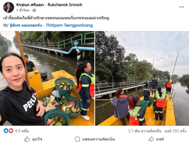 วันที่ 6 พ.ย.2568 น.ส.รักชนก ศรีนอก สส.กทม.พรรคประชาชน โพสต์ภาพลงเรือไปเก็บกระทง พร้อมกับข้อความว่า เช้านี้ขอติดเรือพี่ฝ่ายรักษาเขตหนองแขมเก็บกระทงและล่าเหรียญ