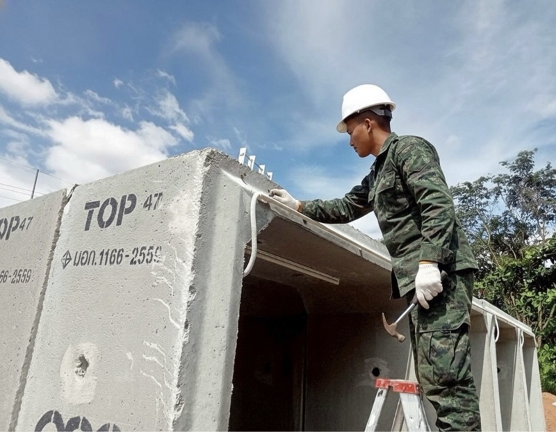 ปัจจุบัน กองทัพบกได้จัดกำลังพล เครื่องมือ และยุทโธปกรณ์ เข้าดำเนินการออกแบบ ก่อสร้าง และติดตั้ง หลุมบุคคลคู่จำนวน 328 แห่ง และ หลุมหลบภัยสำหรับประชาชน (ขนาดรองรับได้ 40 คน) จำนวน 10 แห่ง โดยแบ่งพื้นที่ดำเนินการ ดังนี้