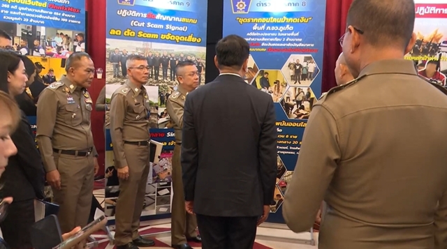 จากนั้น นายกรัฐมนตรีและรมว.มหาดไทย พร้อมด้วยปลัดกระทรวงมหาดไทย และผู้บัญชาการตำรวจแห่งชาติ ร่วมมอบเช็คเงินสดให้กับผู้เสียหายตาม “โครงการ Money Cash Back” ซึ่งเป็นเงินที่ผู้เสียหายถูกหลอกลวง รวม 33 ราย เป็นเงิน 15 ล้านบาท โดยได้รับความร่วมมืออย่างดีจากสถาบันการเงินและหน่วยงานที่เกี่ยวข้อง ซึ่งที่ผ่านมาสามารถติดตามเงินคืนให้กับผู้เสียหายรวม 312 ล้านบาท และเยี่ยมชมนิทรรศการผลการปฏิบัติภาพรวมสำนักงานตำรวจแห่งชาติและภาคีเครือข่าย อาทิ AIS True Money Line Corporation รวมถึงรับทราบแอปพลิเคชั่น Cyber Check ของสำนักงานตำรวจแห่งชาติซึ่งเป็นแพลตฟอร์มสแกนวงจรสแกมเมอร์ผ่านแพลตฟอร์มหลักในประเทศและต่างประเทศ โดยในวันนี้ ผศ.ดร.ณัฐพร กาญจนภูมิ คณบดีคณะเทคโนโลยีสารสนเทศและการสื่อสาร ได้มอบดอกไม้เพื่อเป็นการขอบคุณนายกรัฐมนตรีและรัฐมนตรีว่าการกระทรวงมหาดไทยที่ได้เดินหน้านโยบายปราบปรามสแกมเมอร์อย่างเข้มข้น ส่งผลให้ล่าสุด กองบัญชาการตำรวจภูธรภาค 7 ได้ช่วยเหลือนักศึกษาชั้นปีที่ 3 คณะเทคโนโลยีสารสนเทศและการสื่อสาร มหาวิทยาลัยศิลปากร ซึ่งถูกแก๊งคอลเซ็นเตอร์หลอกลวงให้โอนเงิน 830,000 บาท โดยสามารถอายัดเงินได้ทันและระงับไม่ให้น้องนักศึกษาโอนเงินเพิ่มด้วย และคุณฮาร์ท สุทธิพงศ์ ทัดพิทักษ์กุล เป็นตัวแทนประชาชนที่เดือดร้อนจากแก๊งต้มตุ๋นกลวงมิจฉาชีพ ร้องเพลงขอบคุณรัฐบาลและสำนักงานตำรวจแห่งชาติที่ทำงานอย่างเข้มแข็งเชิงรุกจนกระทั่งได้ค่าเสียหายมาชดเชยให้กับประชาชนผู้ได้รับความเสียหาย ถือเป็นผลงานชิ้นสำคัญของรัฐบาลและสำนักงานตำรวจแห่งชาติ