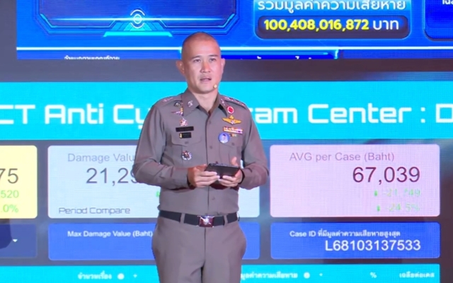 ในส่วนของประเทศไทยตลอด 3 ปี มีสถิติสะสมประมาณ 1,000,000 เคส ความเสียหายมากกว่า 100,000 ล้านบาท มีรับแจ้งเหตุใหม่ 300,000 เคส ความเสียหาย 20,000 ล้านบาท และในแต่ละวันจะมีเหตุใหม่ วันละมากกว่า 3,000 เรื่อง ความเสียหายวันละกว่า 70,000,000 บาท (+,-) โดยการแก้ปัญหาเหล่านี้ต้องแก้จากต้นเหตุ เช่น การเจรจาหรือกดดันประเทศที่เป็นฐานแกมเมอร์ด้วยวิธีการต่าง ๆ อาทิ การเชิญชวนนานาประเทศร่วมกันลงพื้นที่ไปในพื้นที่ที่เป็นต้นเหตุ ทำให้เขาให้ความร่วมมืออย่างจริงจังและจริงใจ รวมถึงการแทรกแซง เช่น การตัดอินเตอร์เน็ต ไฟฟ้า น้ำมัน เพื่อกดดันให้ให้ประเทศเหล่านั้นรับผิดชอบ แต่หากประเทศเหล่านั้นไม่ร่วมมือ เราก็ต้องทำทุกวิถีทางเพื่อให้คนไทยปลอดภัย สังคมไทยอยู่ได้อย่างผาสุก ความร่วมมือภายในและภายนอกประเทศจะนำไปสู่ความสำเร็จในการปราบปราม แต่ต้องใช้เวลาในการขับเคลื่อน ซึ่ง 1 เดือนที่ผ่านมาเราได้เห็นความเปลี่ยนแปลง และเราจะสู้อย่างเต็มที่ด้วยศักยภาพของทุกคนทุกหน่วยงาน