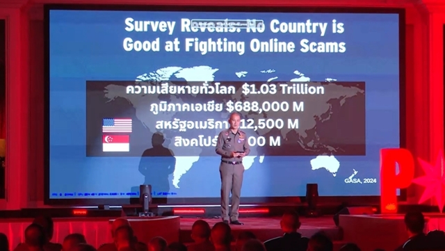 ด้านพล.ต.ท.จิรภพ ภูริเดช ผู้ช่วยผู้บัญชาการตำรวจแห่งชาติ กล่าวว่า สถานการณ์ Cyber Scammer มีความรุนแรงจนส่งผลกระทบไปทั่วโลก ซึ่งจากสถิติ Global Anti-Scam Alliance (GASA) พบการโจมตีนานาประเทศทั่วโลก มูลค่าสูงถึง 1.03 trillion USD หรือคิดเป็น 1 ล้านล้านบาท ภูมิภาคเอเชียได้รับผลกระทบมากที่สุด 688,000,000,000 USD โดยประเทศจีนโดนหนักสุด อาทิ ที่เมืองเล่าก์ก่าย (Laukkaing) พบมีอาคารสูงทันสมัยเป็นฐานการทำงานของสแกมเมอร์มากถึง 6 อาคาร ซึ่งมีคนร้ายถูกจับกุม 5,000 กว่าคน ในจำนวนนั้นเป็นคนไทยประมาณ 500 คน ที่ได้ได้ถูกส่งตัวกลับมายังประเทศไทยแล้ว หรือที่สหรัฐอเมริกาได้รับผลกระทบ 12,500,000,000 USD ซึ่งเป็นความเสียหายรุนแรง รวมถึงประเทศสิงคโปร์ ได้รับผลกระทบมากถึง 1,200,000,000 บาท