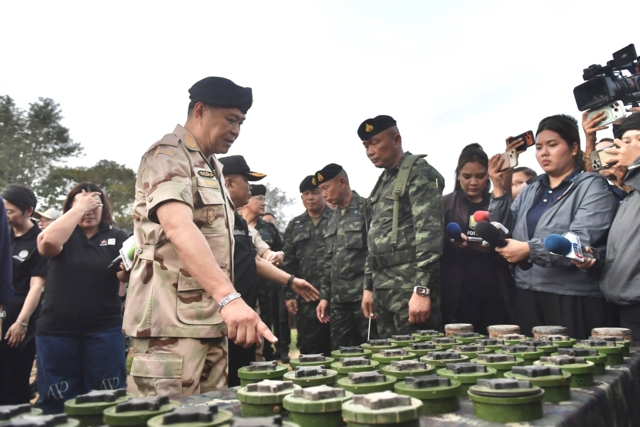 ทันทีที่ นายกรัฐมนตรี เดินทางถึงฐานปฏิบัติการ ได้รับฟังบรรยายสรุปสถานการณ์ และการปฏิบัติภารกิจในการรักษาอธิปไตย รวมไปถึงสถานการณ์การเกิดเหตุเหยียบทุ่นระเบิดที่ผ่านมา จำนวน 7 ครั้ง จากนั้นนายกรัฐมนตรี ได้ตรวจสอบทุ่นระเบิดได้เก็บกู้แล้ว ทั้งแบบเก่าและแบบใหม่ พร้อมรับรายงานว่าเป็นทุ่นระเบิดที่ถูกฝังอยู่ตามแนวลาดตระเวนของทหารฝ่ายไทย ซึ่งจากการพิสูจน์ทราบจุดเกิดเหตุ ร่องรอยดินบริเวณรอบข้าง เพิ่งถูกรบกวนใหม่ ๆ รวมถึงมีรากไม้ก็เพิ่งถูกตัด จึงคาดว่าเป็นทุ่นระเบิดที่เพิ่งนำมาฝัง ซึ่งบริเวณจุดเกิดเหตุทหารไทยได้นำรั้วลวดหนามไปวางไว้ แต่ทางทหารกัมพูชาได้นำออก ซึ่งคาดว่ากัมพูชาได้นำทุ่นระเบิดมาฝังไว้ ไม่เกิน 1 วันก่อนเกิดเหตุ