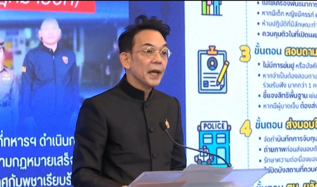 ที่สำคัญคือการดำเนินการของไทยมีแนวปฏิบัติที่มีมาตรฐานอย่างชัดเจน ซึ่งจะมีการบริหารจัดการกับผู้หลบหนีเข้าเมืองเป็นกลุ่ม ไม่มีการให้อยู่เพียงลำพัง ดังนั้นจะมีสักขีพยานตลอดการดูแลผู้หลบหนีเข้าเมืองเหล่านี้ ตนขอย้ำว่าประเทศไทยเคารพและยึดมั่นในกฎหมายสิทธิมนุษยชนระหว่างประเทศและหลักมนุษยธรรม ไทยเป็นภาคีตราสาร ด้านสิทธิมนุษยชนที่สำคัญ 8 ฉบับ