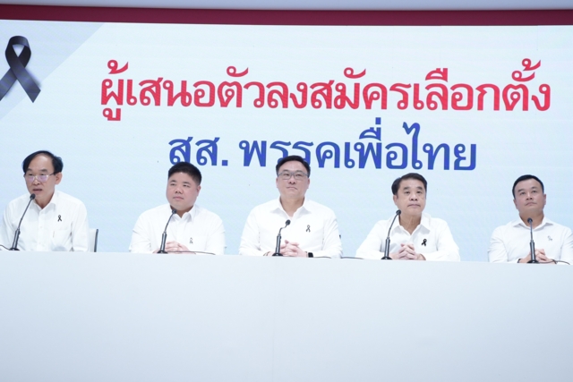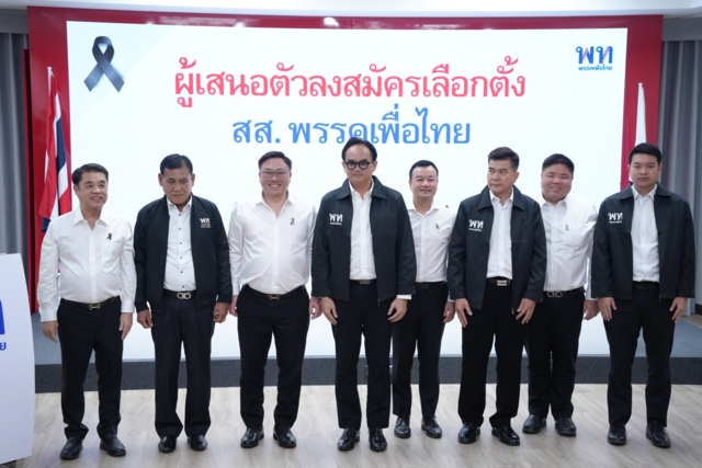 นายจุลพันธ์ อมรวิวัฒน์ หัวหน้าพรรคเพื่อไทย พร้อมด้วย นายสุริยะ จึงรุ่งเรืองกิจ ผู้อำนวยการการเลือกตั้งพรรคเพื่อไทย นายสรวงศ์ เทียนทอง รองหัวหน้าพรรค นายพงศ์กวิน จึงรุ่งเรืองกิจ รองหัวหน้าพรรค และนายสงคราม กิจเลิศไพโรจน์ อดีต รมช.พาณิชย์ ร่วมเปิดผู้เสนอตัวลงสมัครรับเลือกตั้งเป็นสมาชิกสภาผู้แทนราษฎร จังหวัดสมุทรปราการ แบบแบ่งเขตเลือกตั้งจำนวน 8 คน ประกอบด้วย นายอัครวัฒน์ อัศวเหม, นายยงยุทธ สุวรรณบุตร, นายภิญโญ กิจเลิศไพโรจน์, นายกรวัฒน์ หันประดิษฐ์, นายปิยะพงษ์ เหมะ, นางสาวนฤมล ธารดำรงค์, นายประชา ประสพดี และ นางสาวสลิลทิพย์ สุขวัฒน์