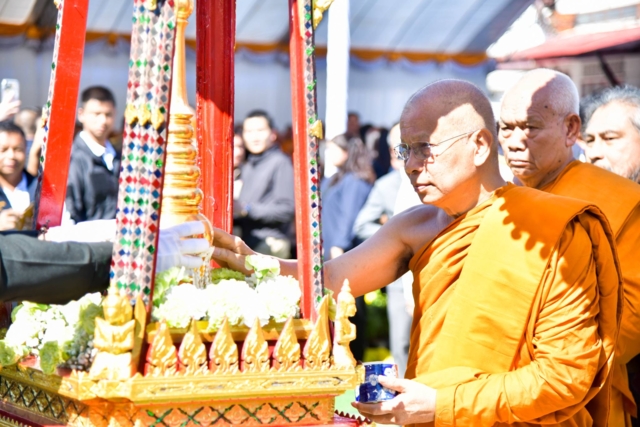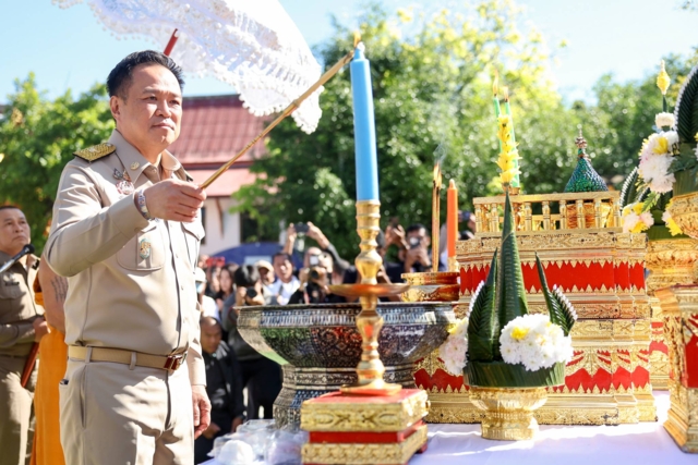 เมื่อนายกรัฐมนตรี เดินทางถึงมณฑลพิธีบริเวณลานด้านหน้าองค์พระมหาธาตุแก่นนครฯ ได้จุดธูปเทียนบูชาพระรัตนตรัย จุดธูปเทียนนมัสการบูชาพระธาตุแก่นนคร ที่โต๊ะบวงสรวงประกอบพิธี จากนั้นนายกฯเข้าถวายสักการะ สมเด็จพระมหาวีรวงศ์ และพระสงฆ์ในพิธี
