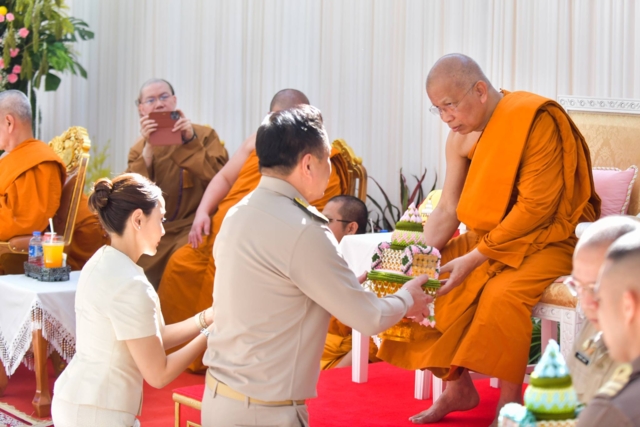 จากนั้น นายกรัฐมนตรี เดินทางโดยรถยนต์โตโยต้า อัลพาร์ด สีดำ ทะเบียน ขฉ234 ขอนแก่น เดินทางไปที่วัดหนองแวง พระอารามหลวง ร่วมพิธียกยอดฉัตรทองคำ โดยมี สมเด็จพระมหาวีรวงศ์ กรรมการมหาเถรสมาคม และเลขานุการสมเด็จพระสังฆราช องค์ประธานฝ่ายสงฆ์ ประกอบพิธียกยอดฉัตรทองคำ พระมหาธาตุแก่นนครอนุสรณ์สาธุชน และสมโภชสัญญาบัตรพัดยศ พระครูสัญญาบัตรผู้ช่วยเจ้าอาวาสพระอารามหลวง และพระบัญชาสมเด็จพระสังฆราชแต่งตั้งผู้ช่วยเจ้าอาวาสพระอารามหลวง