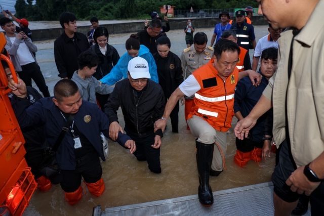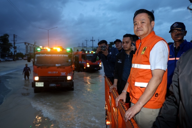 เวลา 17.17 น. (22 พ.ย. 2568) นายอนุทิน ชาญวีรกูล นายกรัฐมนตรี และรัฐมนตรีว่าการกระทรวงมหาดไทย พร้อม น.ส.ธนนนท์ นิรามิษ ภริยา และคณะ ขึ้นรถยกสูงของกรมป้องกันและบรรเทาสาธารณภัย (ปภ.) จากท่าอากาศยานนานาชาติหาดใหญ่ ลงพื้นที่เยี่ยมผู้ประสบภัยน้ำท่วม พร้อมมอบถุงยังชีพให้แก่ประชาชน ที่ประสบปัญหาบริเวณสี่แยกโรงปูน (บิ๊กซี) โดยระหว่างทางนายกรัฐมนตรี ได้สอบถามประชาชนที่ติดอยู่ข้างทางถึงความเป็นอยู่และอาหารการกินเป็นระยะ พร้อมกับแจกจ่ายอาหารและน้ำดื่ม ซึ่งประชาชนต้องการเป็นอย่างมาก และจังหวะหนึ่งประชาชน ตะโกนถามว่านึกว่านายกรัฐมนตรีจะไม่มาเยี่ยมแล้ว โดย นายกฯ กล่าวตอบ "ไม่ทิ้งแน่นอน" และช่วงหนึ่งได้หยุดรถลงไปพบกับครอบครัวที่กำลังนำผู้ป่วยติดเตียงไปรักษา และประสานสั่งการให้นายแพทย์สาธารณสุข และหน่วยงานที่เกี่ยวข้องนำนำทางให้ถึงโรงพยาบาล