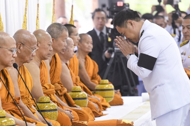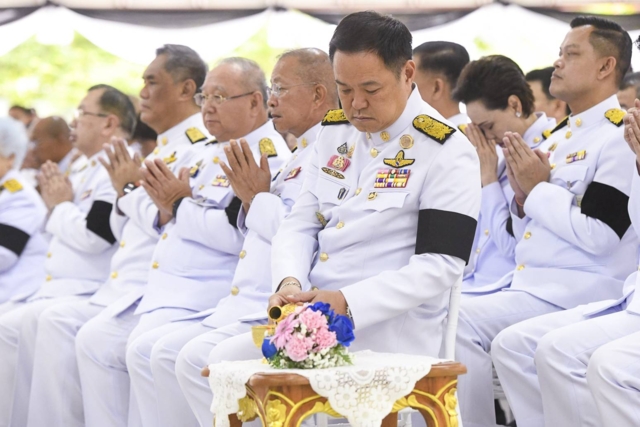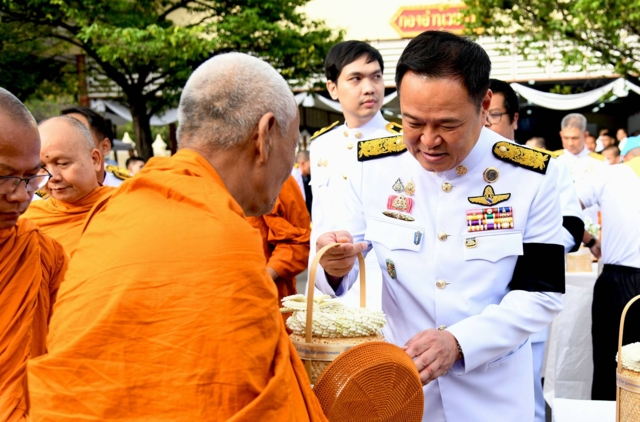 นายกรัฐมนตรีได้กราบนมัสการพระรัตนตรัย และ ถวายความเคารพพระบรมฉายาลักษณ์พระบาทสมเด็จพระมงกุฎเกล้าเจ้าอยู่หัวและพระรูปสมเด็จพระเจ้าภคินีเธอ เจ้าฟ้าเพชรรัตนราชสุดา สิริโสภาพัณณวดี พร้อมร่วมพิธีตักบาตร สมเด็จพระราชาคณะ พระราชาคณะ และพระสงฆ์