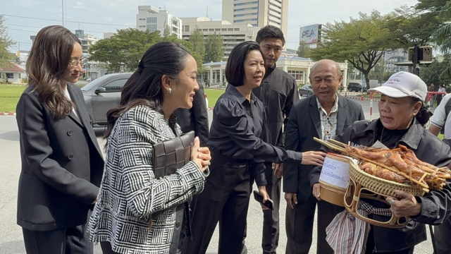 โดยนางเพ็ญ พินิจอักษร ตัวแทนกลุ่มผู้สนับสนุน ซึ่งเดินทางมาจากจังหวัดศรีสะเกษ ได้นำไก่ย่างโอทอปห้าดาวของตำบล พร้อมกระติบข้าวเหนียวจำนวน 3 ไม้ มามอบให้ น.ส.แพทองธาร เป็นการนำของฝากจากบ้านเกิดมามอบให้ “นายกฯ ในดวงใจ” เพื่อแสดงความผูกพันและความจงรักภักดี พร้อมกล่าวว่าครั้งหนึ่งในยุครัฐบาลนายทักษิณเป็นผู้ผลักดันโครงการโอทอปจนทำให้ชาวบ้านมีรายได้และคุณภาพชีวิตดีขึ้น จึงตั้งใจเดินทางมามอบของฝากด้วยตัวเองในวันนี้
