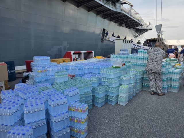 นอกจากจะนำอาหารและน้ำดื่ม รวมถึงสิ่งของบรรเทาทุกข์ไปให้ประชาชนที่ยังติดอยู่ในพื้นที่ประสบภัยแล้ว กองทัพเรือเตรียมเคลื่อนย้ายอพยพประชาชนออกจากจุดที่มีวิกฤตความเสี่ยงสูง และสนับสนุนหน่วยงานท้องถิ่นใน ตลอดจนการฟื้นฟู และประเมินพื้นที่ที่รับความเสียหายในเบื้องต้นอีกด้วย