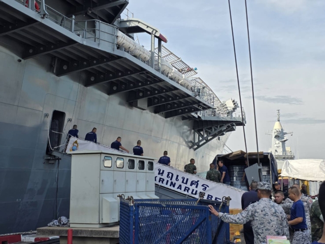ทั้งนี้ทหารเรือหลายนายช่วยกันลำเลียงน้ำดื่ม และอาหารแห้งที่ได้รับการบริจาคจากภาคเอกชนขึ้น เรือหลวงจักรีนฤเบศร เพื่อเข้าไปช่วยเหลือพื้นที่ที่สถานการณ์น้ำยังคงวิกฤต และรอความช่วยเหลืออยู่ ถือว่าเป็นภารกิจเร่งด่วน
