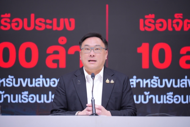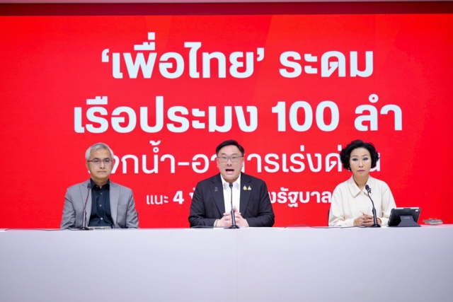 พรรคเพื่อไทยได้ประสานงานกับสมาคมชาวประมงจังหวัดสงขลาและสมาชิกพรรคในหลายจังหวัด เพื่อระดมจัดเตรียมเรือหางยาว 100 ลำ และเจ็ตสกี 10 ลำ สำหรับภารกิจลำเลียงเสบียง สิ่งของจำเป็น และช่วยเหลืออพยพประชาชนไปยังศูนย์อพยพของรัฐให้ปลอดภัยที่สุด