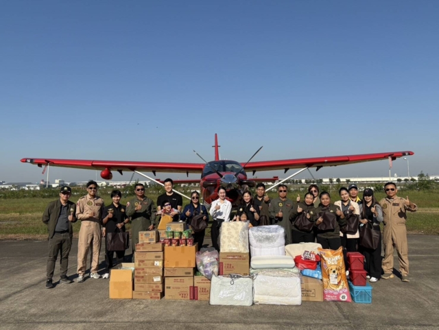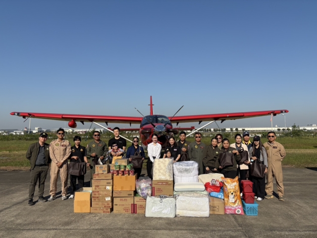นางอริสรา สิทธิยศ ผู้อำนวยการศูนย์เทคโนโลยีดิจิทัลและอากาศยานและ นายสกล ไทยวุฒิวงค์ หัวหน้าฝ่ายแผนปฏิบัติการบินพร้อมคณะเจ้าหน้าที่เป็นผู้รับมอบสิ่งของทั้งหมด ก่อนลำเลียงขึ้นอากาศยานเพื่อนำไปกระจายถึงพื้นที่ที่ยังต้องการความช่วยเหลือ