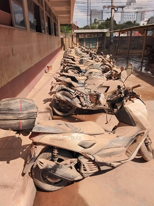 โดยเฉพาะรถจักรยานยนต์สายตรวจของ สภ.หาดใหญ่ จ.สงขลา ที่ได้รับความเสียหายจมน้ำที่ท่วมสูงไม่สามารถใช้การได้จำนวน 94 คัน ผบ.ตร.จึงได้สั่งการด่วนให้สำนักงานส่งกำลังบำรุง (สกบ.) จัดส่งรถจักรยานยนต์คันใหม่ 100 คัน ขนขึ้นรถบรรทุกส่งด่วนถึงที่ สภ.หาดใหญ่ แล้วตั้งแต่วันที่ 3 ธ.ค. ที่ผ่านมา เพื่อนำไปใช้เป็นรถสายตรวจออกตรวจดูแลประชาชน