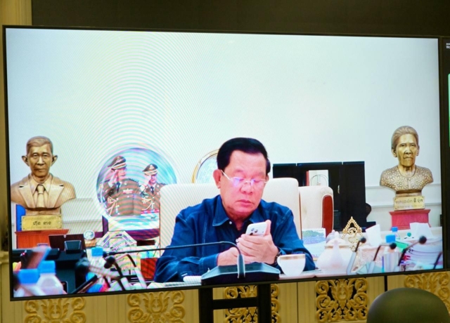วันที่ 8 ธ.ค. 68 นาย ฮุน เซน ประธานวุฒิสภากัมพูชา และอดีตนายกรัฐมนตรีกัมพูชา โพสต์ภาพและข้อความ เป็นภาพเจ้าตัวกำลังประชุมออนไลน์ร่วมกับรมว.กลาโหมและผู้บัญชาการเหล่าทัพต่างๆ ภายหลังเกิดเหตุปะทะชายแดนไทย-กัมพูชาตั้งแต่เมื่อช่วงเช้ามืดที่ผ่านมา ลงในเฟซบุ๊กเพจ “Samdech Hun Sen of Cambodia”