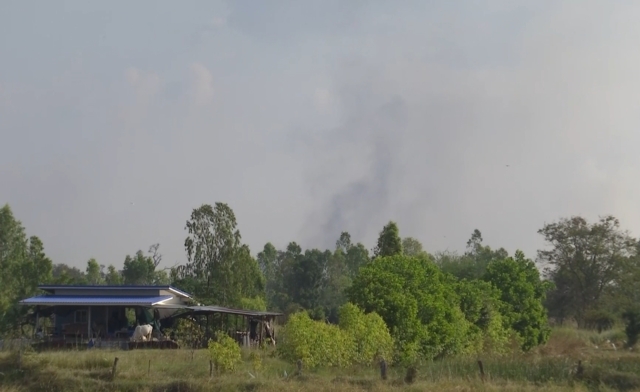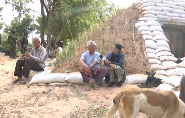 บรรยากาศที่บริเวณ ต.โคกสูง อ.โคกสูง จ.สระแก้ว มีชาวบ้านบ้านหนองเสม็ดส่วนหนึ่งที่ไม่ได้อพยพออกจากพื้นที่เนื่องจากต้องเฝ้าระวังทรัพย์สินในหมู่บ้านอพยพมาอยู่ในบังเกอร์แทน