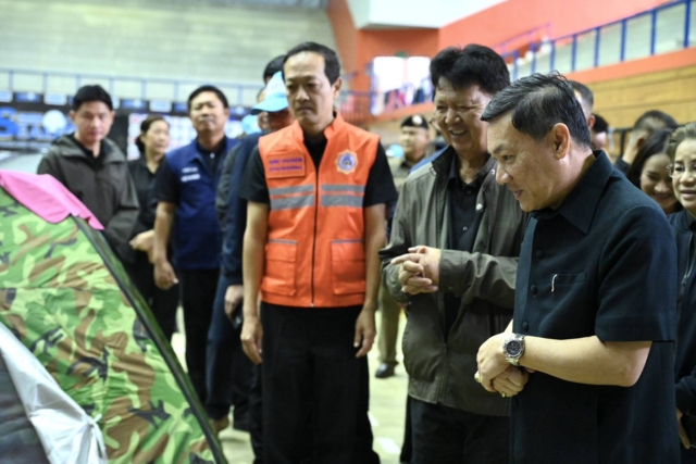 โอกาสนี้ ปลัดกระทรวงมหาดไทย ได้เดินทางตรวจเยี่ยมศูนย์พักพิงจุดต่าง ๆ ในพื้นที่จังหวัดศรีสะเกษ พร้อมเชิญสิ่งของพระราชทานของมูลนิธิราชประชานุเคราะห์มอบให้แก่ผู้ประสบภัย ซึ่งผู้ว่าราชการจังหวัดศรีสะเกษและนายกองค์การบริหารส่วนจังหวัดศรีสะเกษได้บูรณาการทุกภาคส่วนบริหารจัดการให้ประชาชนใช้ชีวิตอย่างเป็นปกติสุขภายในศูนย์พักพิงอย่างมีความสุขในทุกมิติ เช่น การประกอบอาหารเลี้ยงภายในศูนย์พักพิง การแจกจ่ายอาหารตามวงรอบ หน่วยบริการสาธารณสุขที่มีแพทย์ พยาบาล เภสัชกร ประจำตลอด 24 ชั่วโมง รวมถึงศูนย์ พม. ใกล้คุณ ดูแลคุณภาพชีวิตประชาชนกลุ่มเปราะบางประจำศูนย์พักพิง