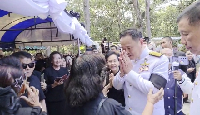 ทั้งนี้ ก่อนขึ้นรถมีพี่น้องประชาชนที่มาร่วมพิธีจำนวนมาก เข้ามาขอถ่ายรูปกับนายกรัฐมนตรี ทำให้นายกรัฐมนตรี ต้องเดินทักทายพี่น้องประชาชนตั้งแต่ต้นทางจนขึ้นรถ มีบางช่วงประชาชนเดินเข้ามาและบอกให้นายกรัฐมนตรีสู้ๆ ในการขจัดปัญหาชายแดนไทยกัมพูชา ให้จบที่รุ่นเรา นายกรัฐมนตรี จึงชูกำปั้นแสดงสัญลักษณ์สู้กับ ก่อนจะชี้ไปที่ พล.อ.ชัยพฤกษ์ บอกคนนี้เป็นแม่ทัพใหญ่