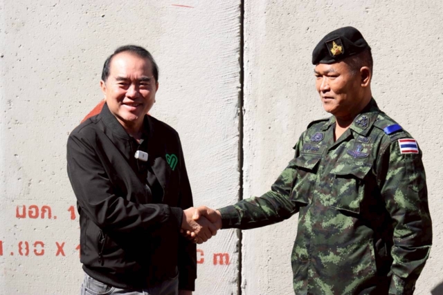 นพ.วรงค์ กล่าวว่า การเดินทางมาครั้งนี้ได้เห็นความคืบหน้าการก่อสร้างบังเกอร์ ซึ่งมูลนิธิไทยรักดีบริจาคเงินก่อสร้างจำนวน 1 แห่งไปตั้งแต่ก่อน กกต.ประกาศวันเลือกตั้ง ซึ่งการก่อสร้างคืบหน้าไปมากและหวังเป็นอย่างยิ่งว่าจะเป็นประโยชน์แก่ทหารหาญในการปกป้องอธิปไตยประเทศ เนื่องจากสถานการณ์สู้รบในพื้นที่ยังคงมีการปะทะต่อเนื่อง ซึ่งพรรคไทยภักดีสนับสนุนแนวทางของกองทัพ และเป็นกำลังใจให้กับกำลังพลที่ต้องมาเสี่ยงชีวิต และไม่เห็นด้วยกับบางพรรคการเมืองที่พยายามด้อยค่ากองทัพ