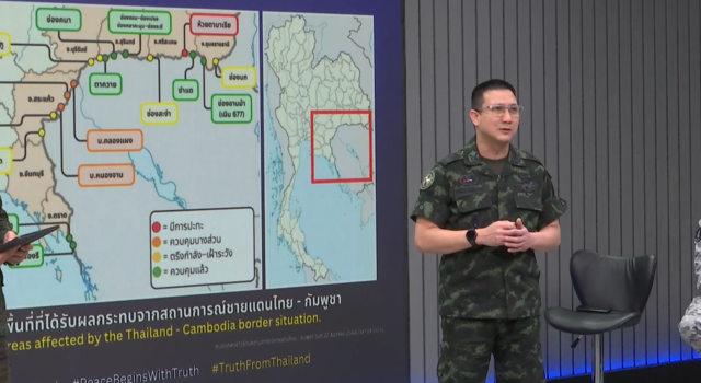(22 ธ.ค. 2568) ที่ศูนย์แถลงข่าวร่วม สถานการณ์ไทย-กัมพูชา ที่สถานีวิทยุโทรทัศน์กองทัพบก พลเรือตรี สุรสันต์ คงสิริ โฆษกกระทรวงกลาโหม กล่าวว่า กองทัพไทยมีหลักฐานว่ากัมพูชาใช้ ที่ตั้งในหมู่บ้านของกัมพูชาเพื่อซ่อนพลางและเป็นฐานโจมตีฝ่ายไทย ซึ่งเราจะรวบรวมนําไปประท้วงในเวทีนานาชาติได้รับทราบถึงความโหดร้ายของกัมพูชาที่ละเมิดสิทธิและอนุสัญญาต่างๆ ระหว่างประเทศ