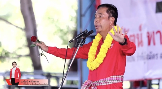 เมื่อวันที่ 21 ธ.ค. ที่ผ่านมา เพื่อปราศรัยหนุน นายทองลี มีหินกอง อดีตประธานชมรมกำนันผู้ใหญ่บ้านภาคตะวันออกเฉียงเหนือ ผู้เสนอตัวลงสมัครรับเลือกตั้ง สส. ร้อยเอ็ด เขต 6 และ นางนวรัตน์ พาโคกทม อดีตสมาชิกสภาองค์การบริหารส่วนจังหวัดร้อยเอ็ด ผู้เสนอตัวลงสมัครรับเลือกตั้ง สส. จ.ร้อยเอ็ด เขต 7 โดยมีประชาชนในพื้นที่มาร่วมฟังการปราศรัยนับหมื่นคน