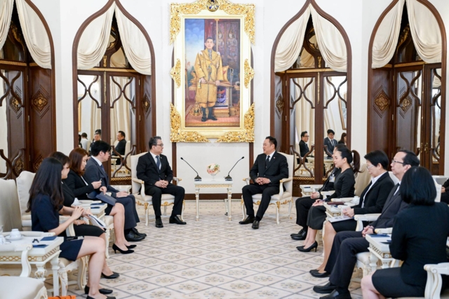 ในโอกาสเดียวกัน ทั้งสองฝ่ายได้แลกเปลี่ยนความคิดเห็นเกี่ยวกับสถานการณ์ระหว่างประเทศ โดยนายกรัฐมนตรี ได้กล่าวถึงสถานการณ์ความตึงเครียดตามแนวชายแดนไทย – กัมพูชาว่า รัฐบาลไทยยึดมั่นในแนวทางการแก้ไขปัญหาอย่างสันติ บนพื้นฐานของข้อเท็จจริงและการเคารพซึ่งกันและกัน พร้อมยืนยันต่อประชาคมโลกว่า ประเทศไทยไม่เคย ไม่เป็น และจะไม่เป็นฝ่ายเริ่มต้นการใช้กำลังทางทหารต่อประเทศใด ซึ่งเอกอัครราชทูตสาธารณรัฐเกาหลีแสดงความเข้าใจต่อจุดยืนของประเทศไทย และเน้นย้ำว่า เกาหลีใต้ในฐานะประเทศมิตร เชื่อมั่นว่าทั้งสองฝ่ายจะสามารถหารือร่วมกันได้อย่างสร้างสรรค์ ตั้งอยู่บนพื้นฐานของข้อเท็จจริง และนำไปสู่การแก้ไขปัญหาอย่างสันติ