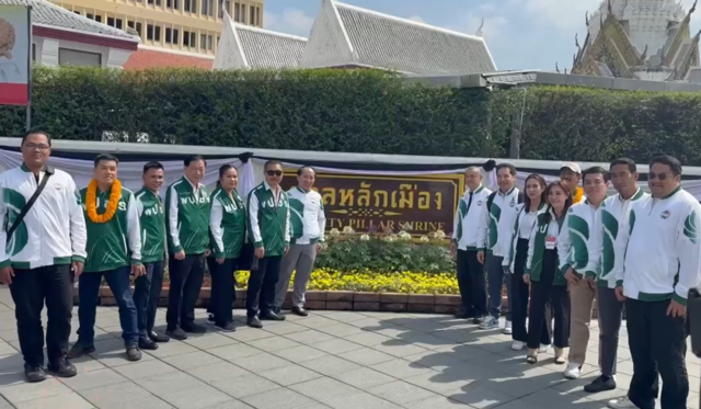 (27 ธ.ค. 2568) ที่ศาลหลักเมืองกรุงเทพมหานคร เมื่อเวลา 14.00 น. กลุ่มผู้สมัครสมาชิกสภาผู้แทนราษฎรกรุงเทพมหานคร พรรคพลังประชารัฐ เข้าไหว้สักการะองค์ศาลหลักเมือง ถวายพวงมาลัย พร้อมผูกผ้าแพร 3 สี และเติมน้ำมันตะเกียง เพื่อความเป็นสิริมงคล