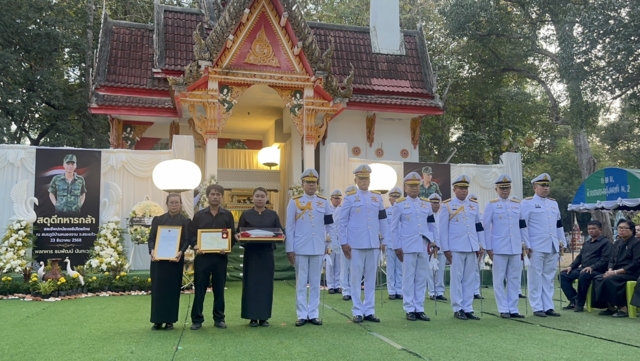 โดยนายอนุทิน แสดงความเสียใจ และให้กำลังใจครอบครัวพลทหารธนพัฒน์ จากนั้นนายกฯ เป็นสักขีพยานในพิธีมอบธงชาติคลุมหีบศพ พร้อมมอบใบประกาศเกียรติคุณ รวมถึงเงินพระราชทาน เงินช่วยเหลือจากกองทัพบก และเงินสินไหมทดแทนจากกองทัพภาคที่ 1