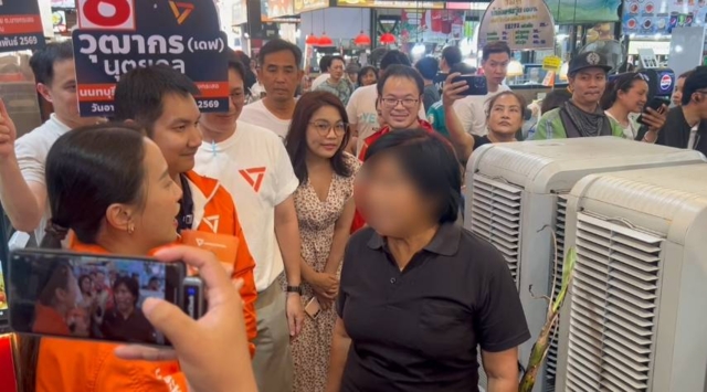แต่ขณะกำลังเดินหาหาเสียง มีหญิงวัยกลางคนสวมเสื้อสีดำ ในมือถือต้นไม้เดินเข้ามาประชิดตัวกับไอซ์ ก่อนใช้ต้นไม้ฟาด พร้อมตะโกนต่อว่า“ ประชาชนเดือดร้อนเคยไปดูไหม มึงเข้าสภามึงทำงานหรือเปล่าหรือจะแก้เฉพาะ ม.112 ” จากนั้นได้มีเสียงโห่ไล่ใส่ผู้หญิงเสื้อดำ จากกองเชียร์ทีมพรรคประชาชนก่อนจะเดินจากไป