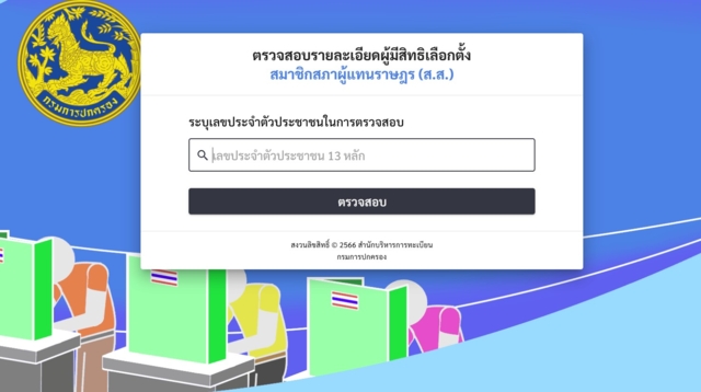 - คลิก ตรวจสอบรายละเอียดผู้มีสิทธิเลือกตั้ง สมาชิกสภาผู้แทนราษฎร (ส.ส.)