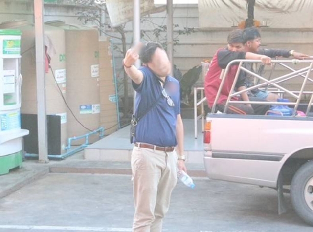 แต่ในขณะนั้น ปรากฎว่ามีลูกทีมช่วยหาเสียงต่างพรรคคนหนึ่ง ได้ชูนิ้วกลางให้และยังทำท่ายิงปืนใส่ตนเอง ต่อหน้าพ่อค้า แม่ค้า และประชาชนที่มาจับจ่ายในตลาดที่เห็นภาพนี้อย่างชัดเจน