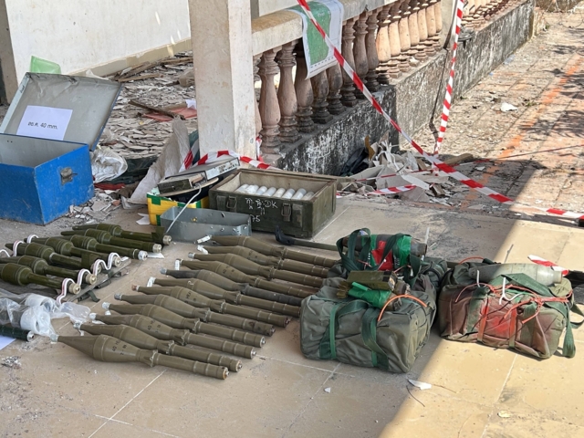 นาวิกโยธินได้ตรวจยึดอาวุธของฝ่ายกัมพูชาได้จำนวนมากจากคลังแสงที่กัมพูชาอ้างว่าเป็นของหน่วยตำรวจตระเวนชายแดนของตน ซึ่งเป็นที่น่าตกใจมาก คือ ทุ่นระเบิดสังหารที่มีการดัดแปลงจากทุ่นระเบิดรถถัง และดัดแปลงจากกระสุนปืนใหญ่จำนวนหนึ่ง ในลักษณะจุดชนวนด้วยกระแสไฟฟ้า ซึ่งเป็นอาวุธที่เข้าข่ายต้องห้ามตามพันธกรณีระหว่างประเทศ โดยเฉพาะ อนุสัญญาออตตาวา (Ottawa Convention) ว่าด้วยการห้ามใช้ สะสม ผลิต และถ่ายโอนทุ่นระเบิดสังหารบุคคล