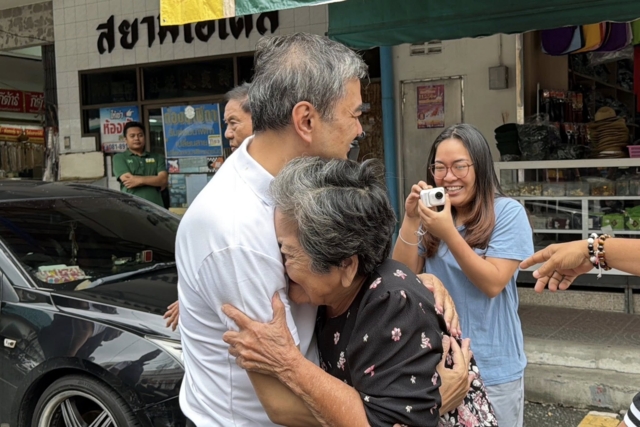 ไฮไลต์สำคัญเกิดขึ้นระหว่างการเดินทักทาย เมื่อมีลูกหลานของคุณยายท่านหนึ่ง ซึ่งนั่งอยู่ในรถและเดินลำบาก ตะโกนบอกนายอภิสิทธิ์ว่าคุณยายอยากเจอตัวจริง ทันทีที่ได้ยิน นายอภิสิทธิ์ ถึงกับวิ่งหน้าตั้งตรงไปยังรถคันดังกล่าวทันที ก่อนที่คุณยายจะพยายามลงจากรถมาโผเข้ากอดและหอมแก้มอดีตนายกฯ ด้วยความดีใจจนถึงขั้นกลั้นน้ำตาไว้ไม่ไหว พร้อมกับกล่าวอวยพรขอให้นายอภิสิทธิ์ ได้กลับมาเป็นนายกรัฐมนตรีอีกครั้งเพื่อดูแลประชาชน