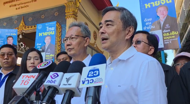 นายอภิสิทธิ์ เวชชาชีวะ หัวหน้าพรรคประชาธิปัตย์ พร้อมด้วย นายเมฆินทร์ เอี่ยมสะอาด รองหัวหน้าพรรคดูแลพื้นที่ภาคกลาง และนายเอิบ พงบุหงอ ผู้สมัคร สส.นนทบุรี พรรคประชาธิปัตย์ เขต 3 เพื่อรับฟังอุปสรรคระบบการศึกษา และการเรียนการสอน จากผู้อำนวยการโรงเรียนวัดใหม่ผดุงเขต จ.นนทบุรี