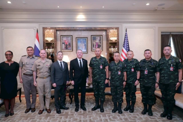 ในด้านความสัมพันธ์ ไทย–สหรัฐฯ ได้หารือการยกระดับความร่วมมือ โดยสหรัฐฯ ยืนยันสนับสนุนงบประมาณทางการทหารกว่า 100 ล้านเหรียญสหรัฐ ในการเสริมสร้างเสถียรภาพชายแดนและแก้ไขปัญหาอาชญากรรมออนไลน์ รวมถึงการสนับสนุนการขยายขีดความสามารถของหน่วยยานเกราะล้อยางสไตรเกอร์และเพิ่มหลักสูตรการศึกษา–ฝึกอบรม อย่างต่อเนื่อง