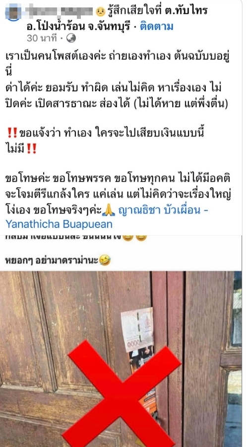 น้องแจ้งว่าลบโพสต์ทั้งในเฟซบุ๊กและไอจีไปแล้ว และชี้แจงว่าเป็นคนทำเอง โพสต์เองค่ะ ไพโรจน์ บัวเผื่อน ผู้สมัคร สส. จันทบุรีเขต 3 และทางทีมงานไม่ได้แนบเงินไว้แต่อย่างใดนะคะ