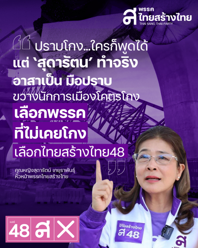 เชื่อมือ สุดารัตน์ ดูแลงบประมาณแผ่นดิน ไม่ให้ถูกโกง เลือกไทยสร้างไทย พรรค ส หมายเลข 48 บัตรสีชมพู