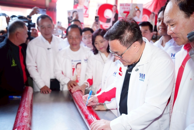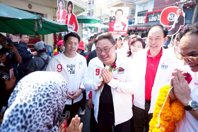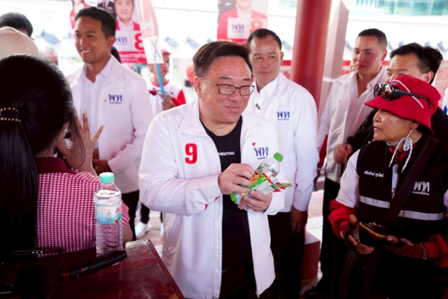 สำหรับคณะพรรคเพื่อไทยที่ลงพื้นที่สมุทรปราการ ประกอบด้วย นายต่อศักดิ์ อัศวเหม ผู้สมัคร สส.แบบบัญชีรายชื่อ, นายสงคราม กิจเลิศไพโรจน์ ผู้สมัคร สส.แบบบัญชีรายชื่อ, นายประเมศฐ์ พิชญ์พันธ์เดชา ผู้สมัคร สส.แบบบัญชีรายชื่อ, นายจาตุรนต์ นกขมิ้น ผู้สมัคร สส.แบบบัญชีรายชื่อ, นายประเมศฐ์ พิชญ์พันธ์เดชา ผู้สมัครสมาชิกสภาผู้แทนราษฎร แบบบัญชีรายชื่อ