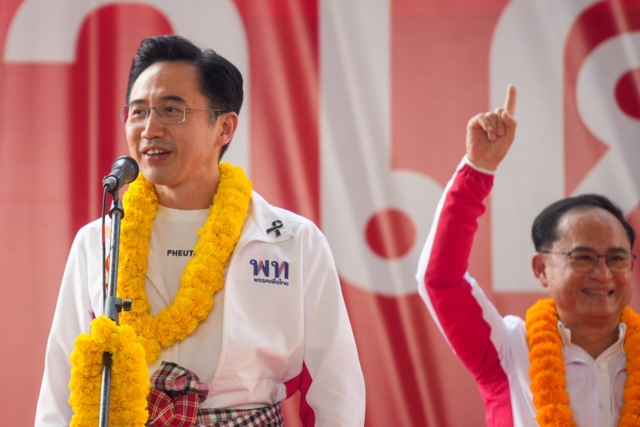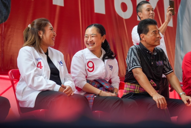 นายยศชนัน วงศ์สวัสดิ์ แคนดิเดตนายกรัฐมนตรี พรรคเพื่อไทย, นายสุริยะ จึงรุ่งเรืองกิจ แคนดิเดตนายกรัฐมนตรี ในฐานะผู้อำนวยการเลือกตั้ง, นางสาวสุดาวรรณ หวังศุภกิจโกศล รองหัวหน้าพรรคเพื่อไทย, นายเทวัญ ลิปตพัลลภ ผู้สมัคร สส. แบบบัญชีรายชื่อ พรรคเพื่อไทย ขึ้นเวทีปราศรัยช่วยนายสมเกียรติ ตันดิลกตระกูล ผู้สมัครสส. จังหวัดนครราชสีมา เขต 5 เบอร์ 1 หาเสียง ที่อาคารเอนกประสงค์ เทศบาลตำบลโนนสูง จังหวัดนครราชสีมา